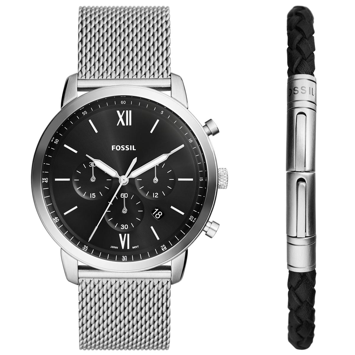 Fossil Neutra set spaja suvremen i klasičan izgled koji podiže svaku mušku odjevnu kombinaciju. Elegantan mesh remen u kontrastu s crnim brojčanikom daje kompletu rafiniran izraz, a uz sat dolazi prateća višeslojna narukvica koja unosi dodatnu dozu stila za svakodnevno nošenje. Ovaj komplet je idealan izbor za poslovne sastanke, večernje izlaske, a također i kao pažljiv poklon za posebne prilike. Nositi ga znači ostaviti dojam promišljenog stila i samopouzdanja.
