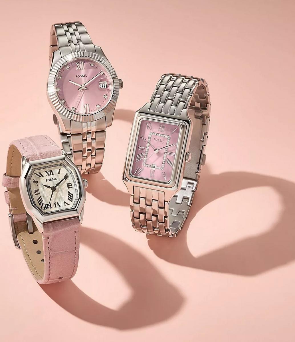 Fossil Scarlette ES5403 iz kolekcije Scarlette spaja suvremenu eleganciju i svakodnevnu nosivost. Ružičasti sunray brojčanik unosi toplinu i sofisticiranost, a rebrasti rub dodaje diskretan detalj koji privlači poglede. Dizajn je profinjen i podiže svaki dnevni outfit te predstavlja odličan izbor za poklon.