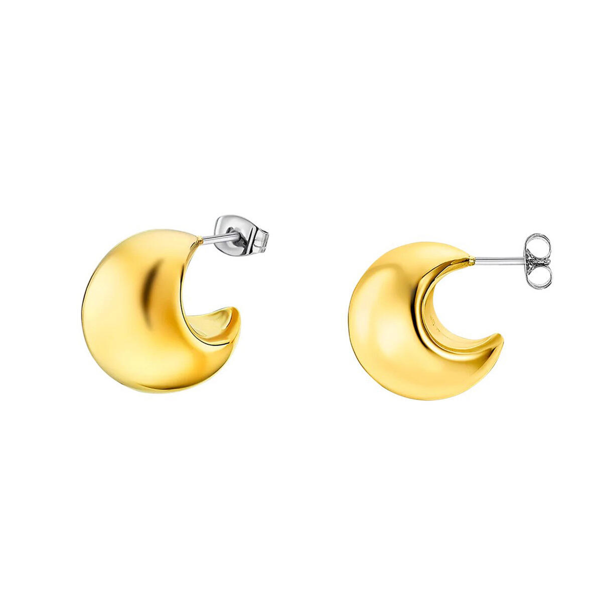 Suptilne polumjesečaste naušnice koje unose diskretnu eleganciju u svaki stajling. Njihov zaobljeni oblik nježno hvata svjetlo, a minimalistički dizajn omogućava lako uklapanje u dnevne i večernje kombinacije. Riječ je o komadu koji istovremeno smiruje i ističe vaš stil na suptilan način. Savršen su izbor kao pažljiv poklon za posebne prilike.