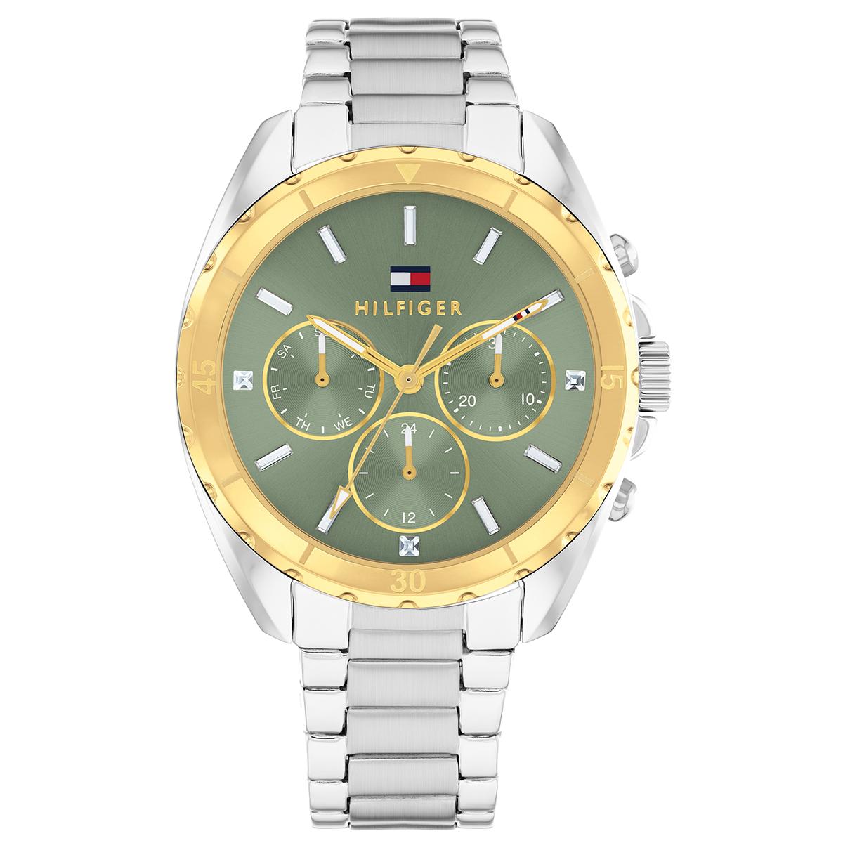 Tommy Hilfiger Mellie odiše suptilnom luksuzom i privlači poglede maslinasto zelenim brojčanikom, a zlatni detalji dodaju notu sofisticiranosti. Dizajn je dovoljno elegantan za poslovne prilike, a istovremeno dovoljno moderan za ležerne izlaze. Diskretni detalji na brojčaniku pružaju praktičnost bez narušavanja profinjenog dojma. Ovo je izvrstan izbor za one koji traže modni sat koji ostavlja utisak i koji se lako uklapa u različite stilove.