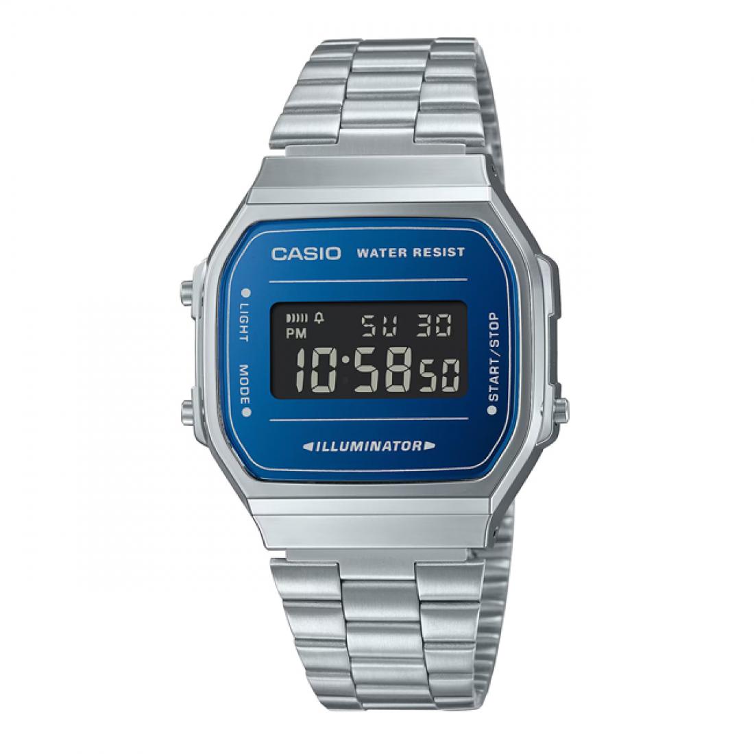 Tamni plavi tonovi kućišta i čelične narukvice čine ovaj digitalni sat upečatljivim i modernim, uz prepoznatljiv retro štih. Digitalni zaslon omogućava brzo i pregledno očitavanje vremena, datuma i dodatnih funkcija poput štoperice i alarma. Lagana čelična narukvica pruža udobno pristajanje, a pouzdani kvarcni mehanizam jamči preciznost. Vodootpornost i izdržljiv dizajn čine sat praktičnim za svakodnevno nošenje, dok retro-stil dodaje karakter i nostalgičan šarm.
