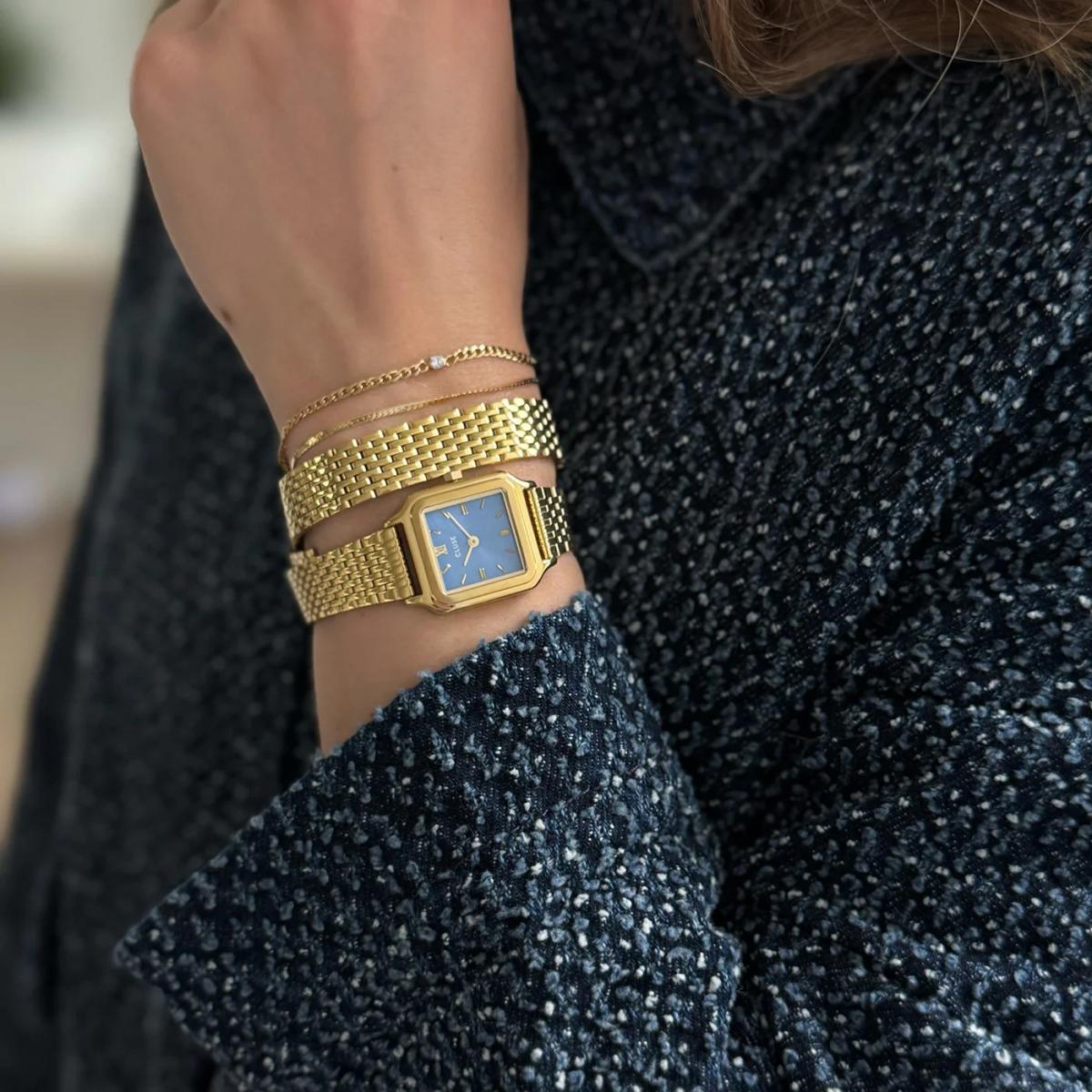 Ovaj sat odiše suptilnom elegancijom i profinjenim dizajnom koji naglašava svaki dnevni i večernji outfit. Kvadratni oblik kućišta i tanka silueta daju mu moderan, a ipak nenametljiv karakter. Idealan je izbor za nekoga tko cijeni diskretan luksuz i svestranost nosivosti. Pažljivo izvedena brava i uglađeni završni detalji čine ga pogodnim i za darivanje.