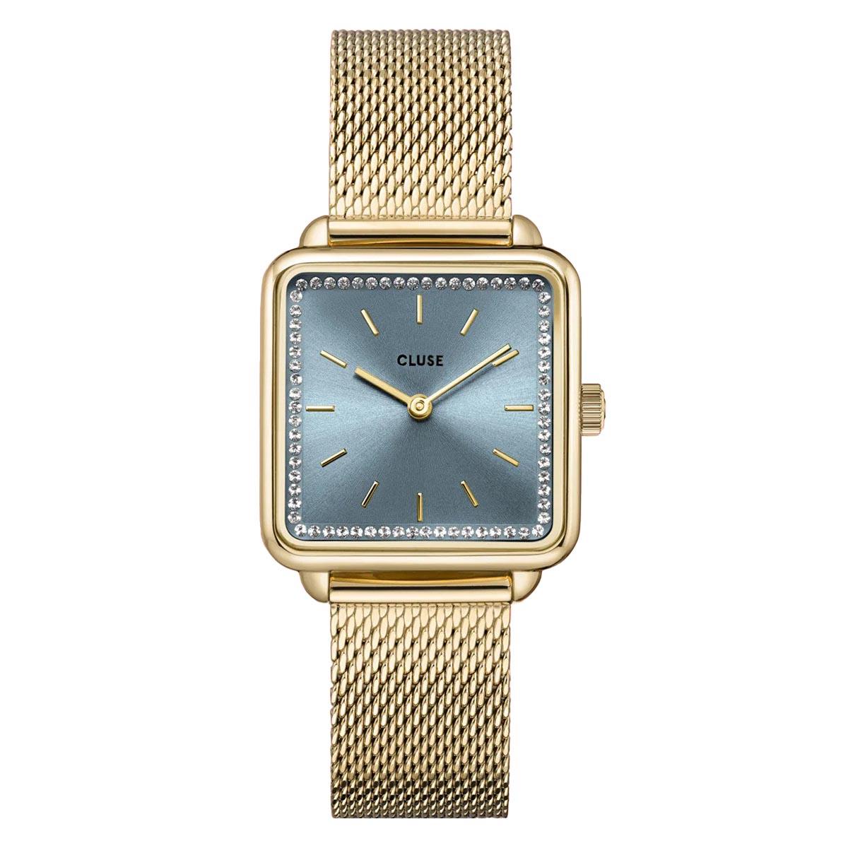 Elegantni sat iz kolekcije La Tetragone koji spaja geometrijsku čistoću kvadratnog kućišta, a svijetloplavi brojčanik unosi sofisticiranu notu. Zlatni ton kućišta i remena daje luksuzan završetak koji lako podiže dnevne i večernje kombinacije. Delikatan dizajn se prirodno uklapa uz poslovnu garderobu, a može biti i upečatljiv modni detalj za izlazak. Savršen izbor kao poklon za posebne trenutke.