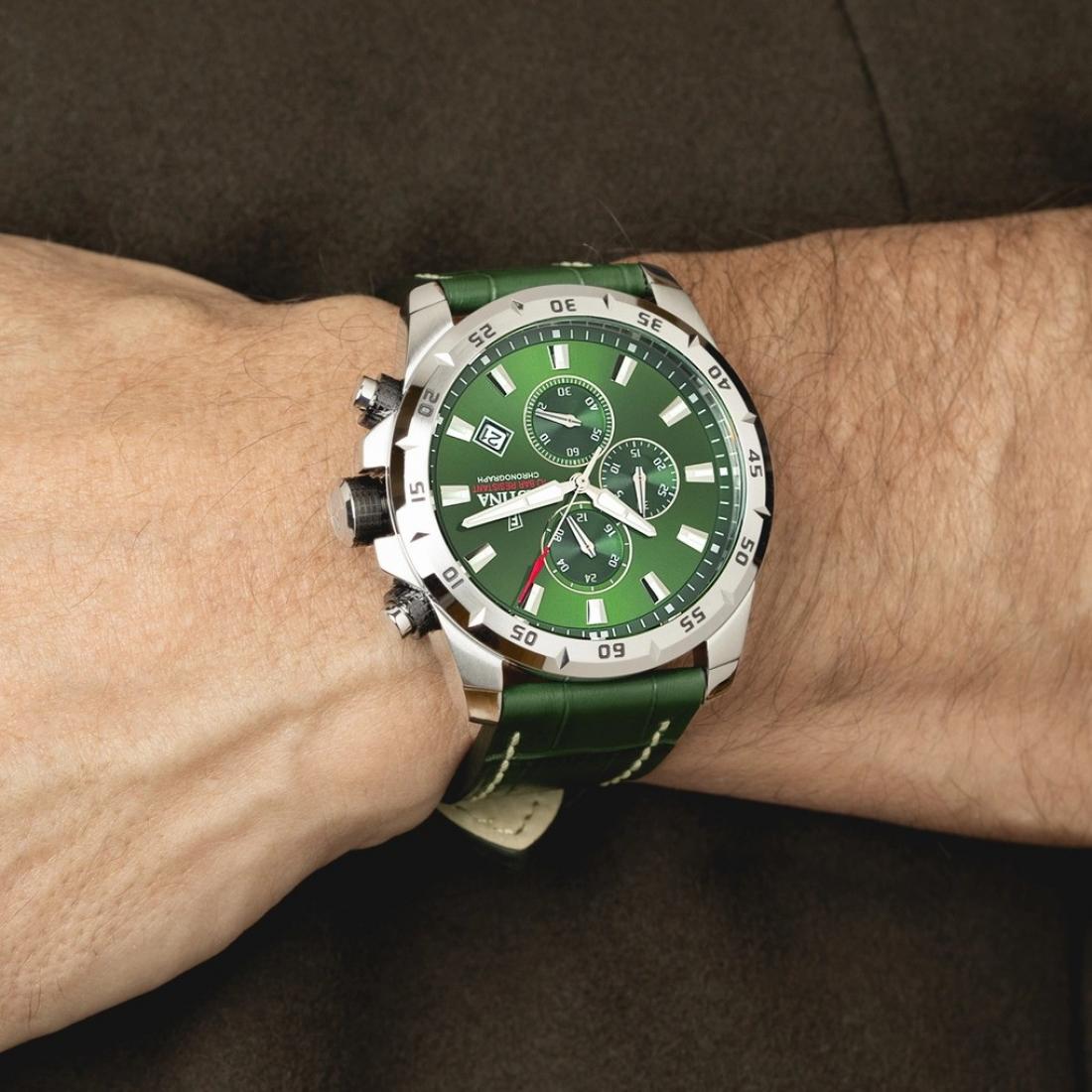 Ovaj Festina sat iz kolekcije Timeless Chronograph odiše urbanom elegancijom u upečatljivoj zelenoj nijansi koja naglašava vašu individualnost. Robusna silueta i odvažan brojčanik daju mu sofisticiran, a istovremeno sportski karakter koji lako prelazi iz kancelarije na slobodno vrijeme. Dodatni detalji u srebrnoj završnici oplemenjuju izgled, a čine ga izvrnim izborom za muškarce koji traže stilski, promišljen poklon.