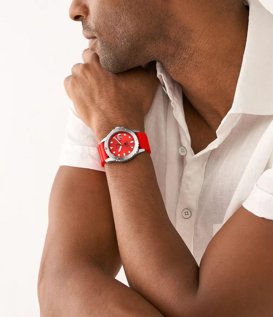 Ovaj Fossil Blue sat u jarkoj crvenoj boji odmah privlači poglede i daje modernu notu svakom outfitu. Njegov sportski, a istovremeno profinjen izgled savršen je za ležerne dnevne kombinacije i vikend avanture. Udoban remen prati ritam aktivnog života, a prepoznatljiv brend dodatno naglašava stilsku vrijednost. Sjajan je izbor kao poklon za one koji vole smjele detalje i žele sat koji ističe osobnost.