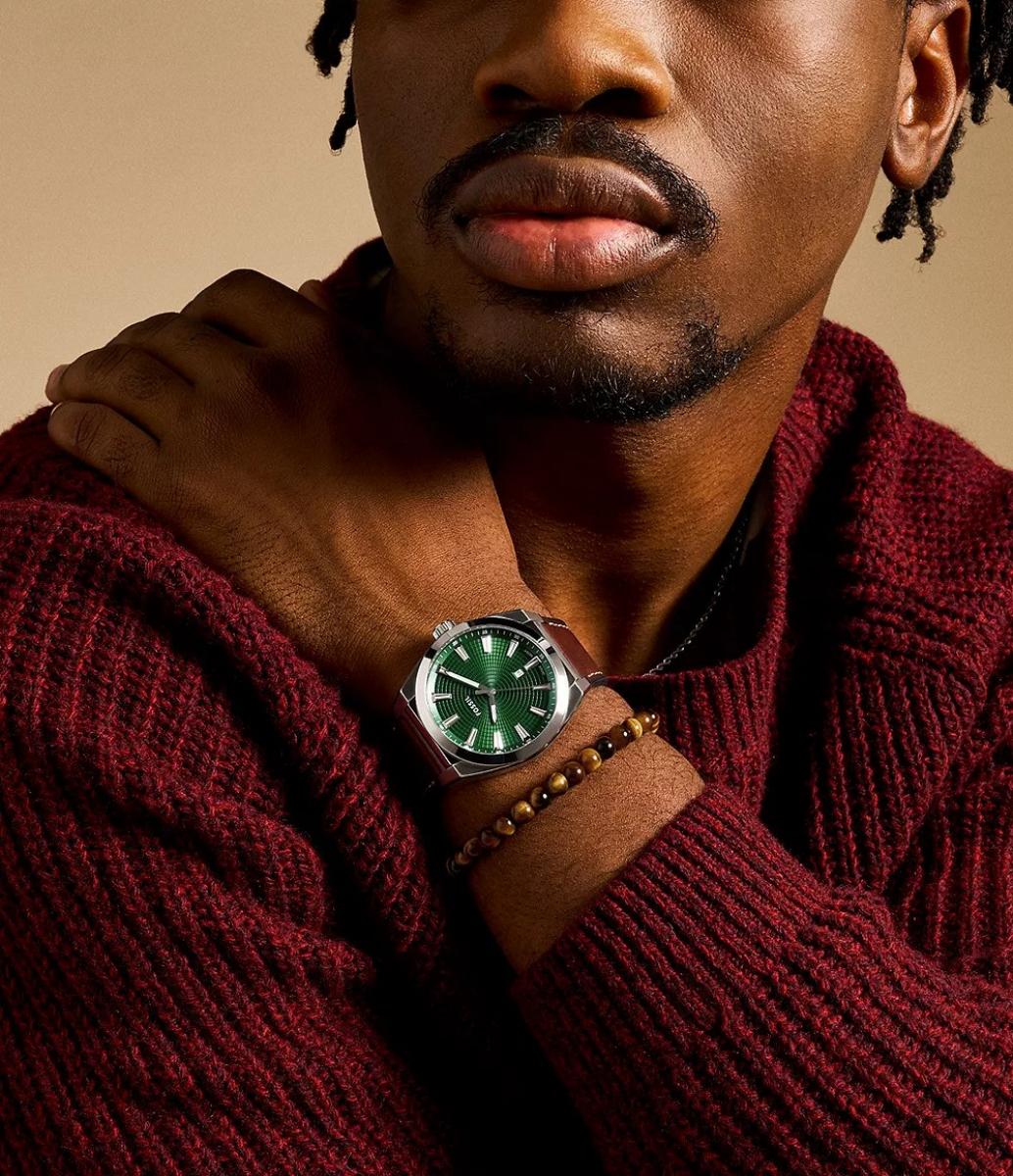 Ovaj muški sat spaja profinjen dizajn i svakodnevnu udobnost. Čelično kućište i kožni remen u toploj smeđoj nijansi daju mu klasičan i svestran izgled, dok zeleni brojčanik sa jasno čitljivim kazaljkama pruža vizualnu jasnoću i suptilan kontrast. Precizan quartz mehanizam omogućava pouzdano mjerenje vremena, a prikaz datuma dodaje praktičnost svakodnevnoj upotrebi. Udoban je za nošenje i idealan je izbor kako za dnevne, tako i za poslovne ili elegantnije situacije.