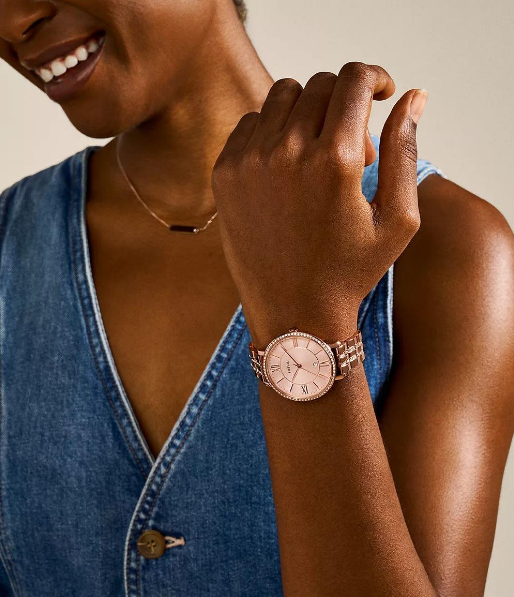 Fossil Jacqueline ES3546 u roze zlatnoj boji odiše profinjenim šarmom i suptilnom elegancijom. Tanka silueta i diskretan sjaj čine ovaj sat neizostavnim modnim dodatkom koji podiže svaki stajling. Savršen je za dnevne poslovne obaveze, a jednako sjaji i na večernjim izlascima. Idealan je izbor za poklon koji ostavlja utisak luksuza bez pretjerane raskoši.