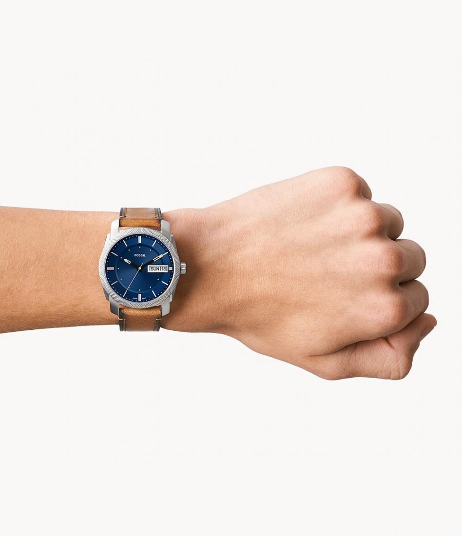 Fossil Machine FS5920 iz kolekcije Machine je sat koji postiže moderan, ali sofisticiran izgled koji lako podiže svaki stajling. Plavi sunray brojčanik stvara upečatljiv kontrast sa toplom tan nijansom remena, a fini uzorak na obruču dodaje karakter. Savršen je izbor za svakodnevne obaveze i poslovna okupljanja, a dovoljno je upečatljiv da bude fokus pažnje na posebnim prilikama. Elegantna kombinacija boja i suptilni detalji čine ga izvrsnim poklonom za one koji cijene stilski potpis bez pretjerivanja.