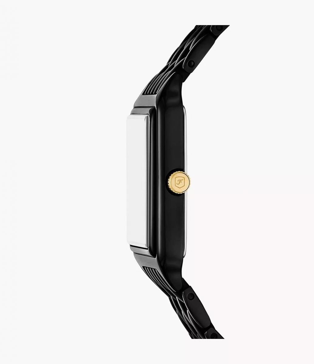 Ovaj ženski sat iz kolekcije Raquel odiše modernom jednostavnošću i profinjenim stilom. Crno kućište i narukvica od nehrđajućeg čelika s PVD premazom daju mu upečatljiv, ali nenametljiv izgled, dok tamni brojčanik s jasno definisanim rimskim markerima i datumom osigurava neutralan i sofisticiran dojam. Tanko, pravougaono kućište i elegantna narukvica čine ovaj model pogodnim za svakodnevno nošenje, ali i za formalne i večernje prilike idealan za one koji vole minimalizam i suptilnu eleganciju.