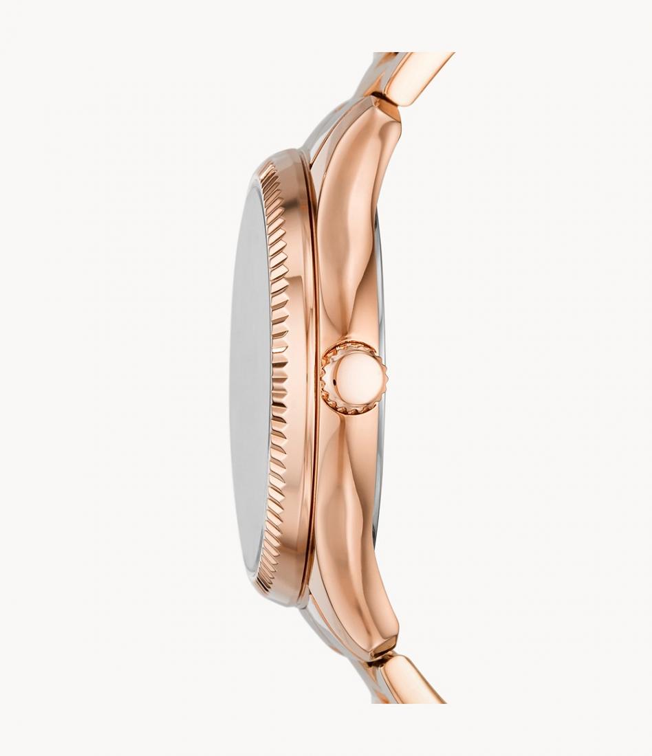 Ovaj Fossil sat iz kolekcije Rye odiše sofisticiranošću i suptilnim sjajem koji privlači poglede bez pretjerivanja. Njegov profinjen dizajn lako podiže poslovne kombinacije, a jednako pristaje i uz ležerne outfite za dan u gradu. Savršen je izbor kao promišljen poklon za posebne trenutke, a njegov svestrani izgled olakšava kombinovanje sa različitim stilovima.