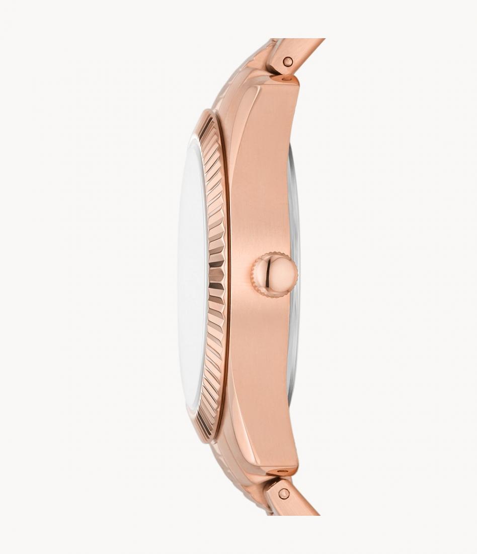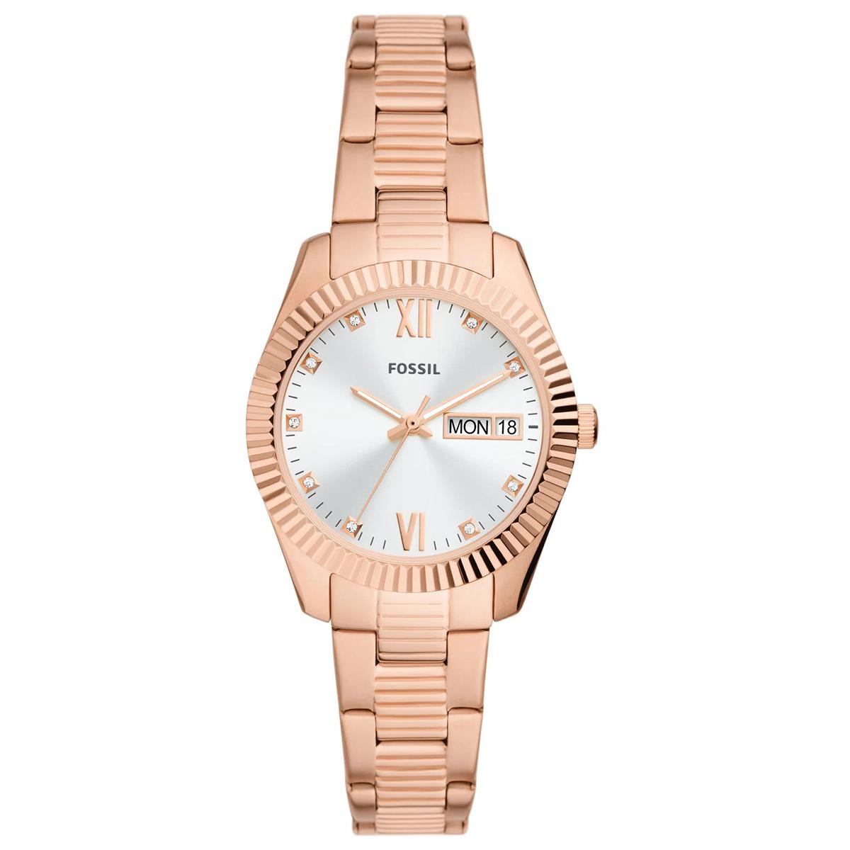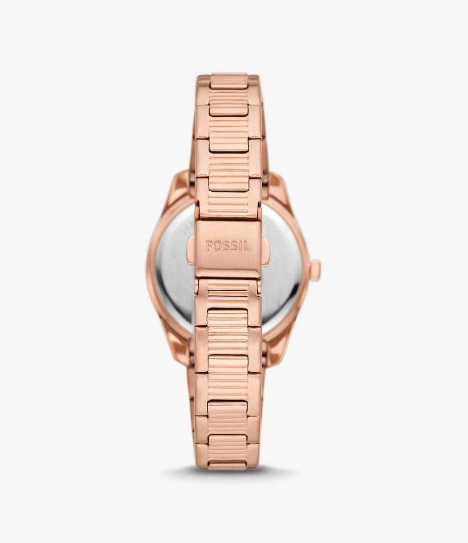 Fossil Scarlette ES5200 odiše suptilnom elegancijom koja podiže svaki stil, a istovremeno ostavlja sofisticiran utisak. Tople roze zlatne nijanse i svjetlucavi brojčanik čine ga idealnim za poslovne prilike, a i za večernje izlaske. Dizajn narukvice lijepo pristaje uz zapešće i daje osjećaj profinjenosti bez pretjeranog isticanja. Pripada kolekciji Scarlette i predstavlja izvrstan izbor kao poklon za posebne trenutke ili kao svakodnevni modni dodatak.