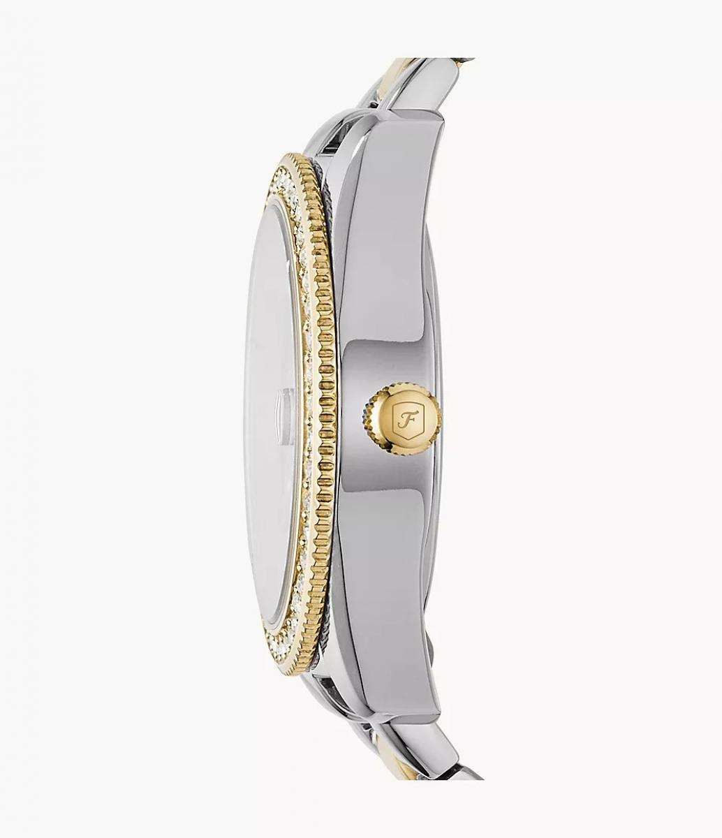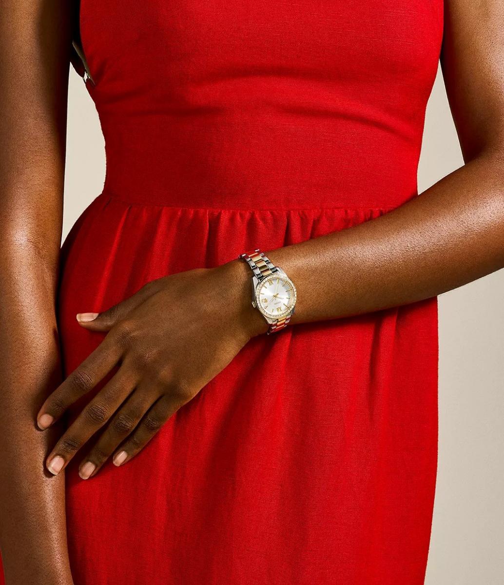 Fossil Scarlette Mini ES4319 donosi suptilan sjaj i bezvremenski stil koji oplemenjuje svaki outfit. Dvobojni izgled u zlatnim i srebrnim nijansama lako se uklapa uz poslovni, svakodnevni, a i večernji stil. Sat ostavlja utisak profinjenosti, a istovremeno zadržava svestranost koja ga čini odličnim izborom za poklon. Nosite ga samostalno za suptilan naglasak ili u kombinaciji s drugim nakitom za upečatljiviji izgled.
