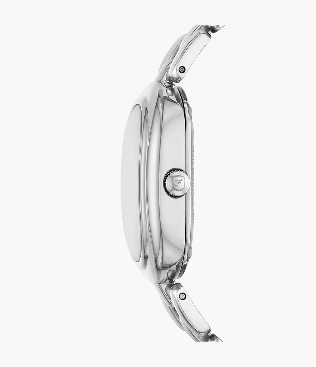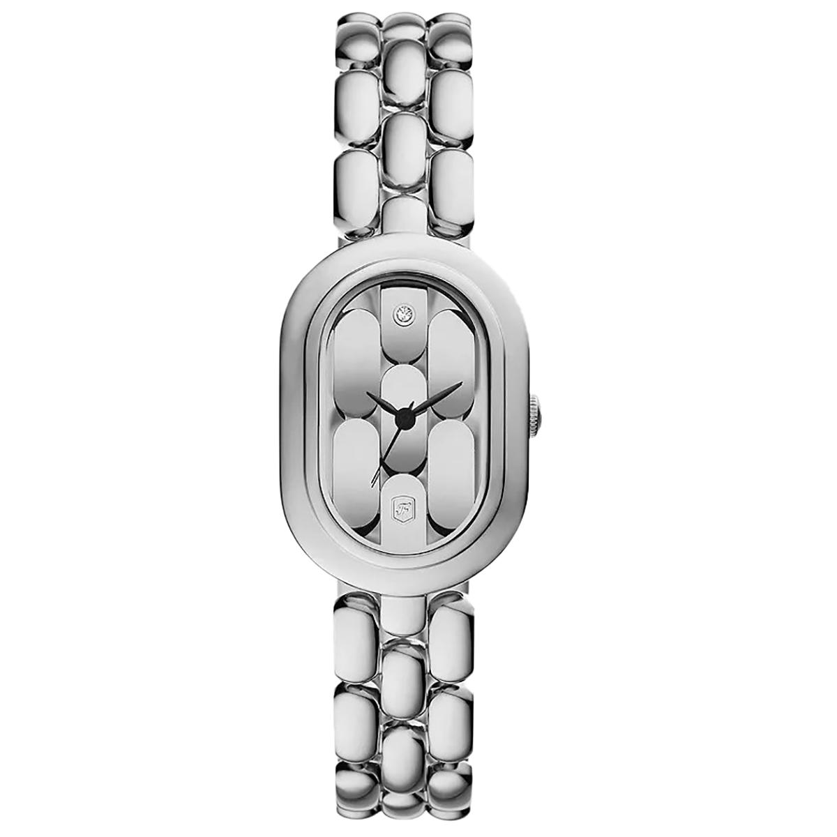 Fossil Sloan ES5381 je elegantan sat koji spaja izgled nakita, a minimalistički ovalni oblik kućišta nježno se nadovezuje na narukvicu u srebrnom tonu. Ručno aplicirani skeletizirani detalji brojčanika stvaraju iluziju povezanih karika koje prolaze kroz kućište, a diskretan kristal na poziciji 12 unosi suptilan sjaj. Savršen je za poslovne i svečane prilike, a istovremeno diskretno podiže svaki dnevni stil. Sat privlači poglede onih koji žele komad nakita s funkcijom sata.