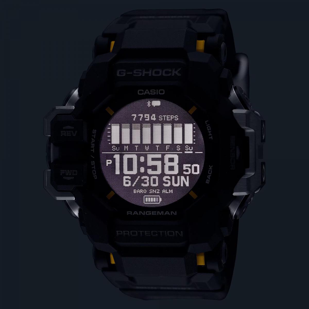 Robusni G-Shock Rangeman odiše neustrašivim stilom i spremnošću za avanturu, a istovremeno je dovoljno upečatljiv za svakodnevni gradski izgled. Njegov odvažan dizajn odgovara planinarenju, treninzima i vikend izletima gdje trebate sat koji prati vaš aktivan tempo. Diskretan estetski pristup lako se uklapa uz ležerne i sportske kombinacije, a izvrsno funkcionira kao poklon za osobe koje cijene pouzdanost. Sat pripada kolekciji G-Shock.