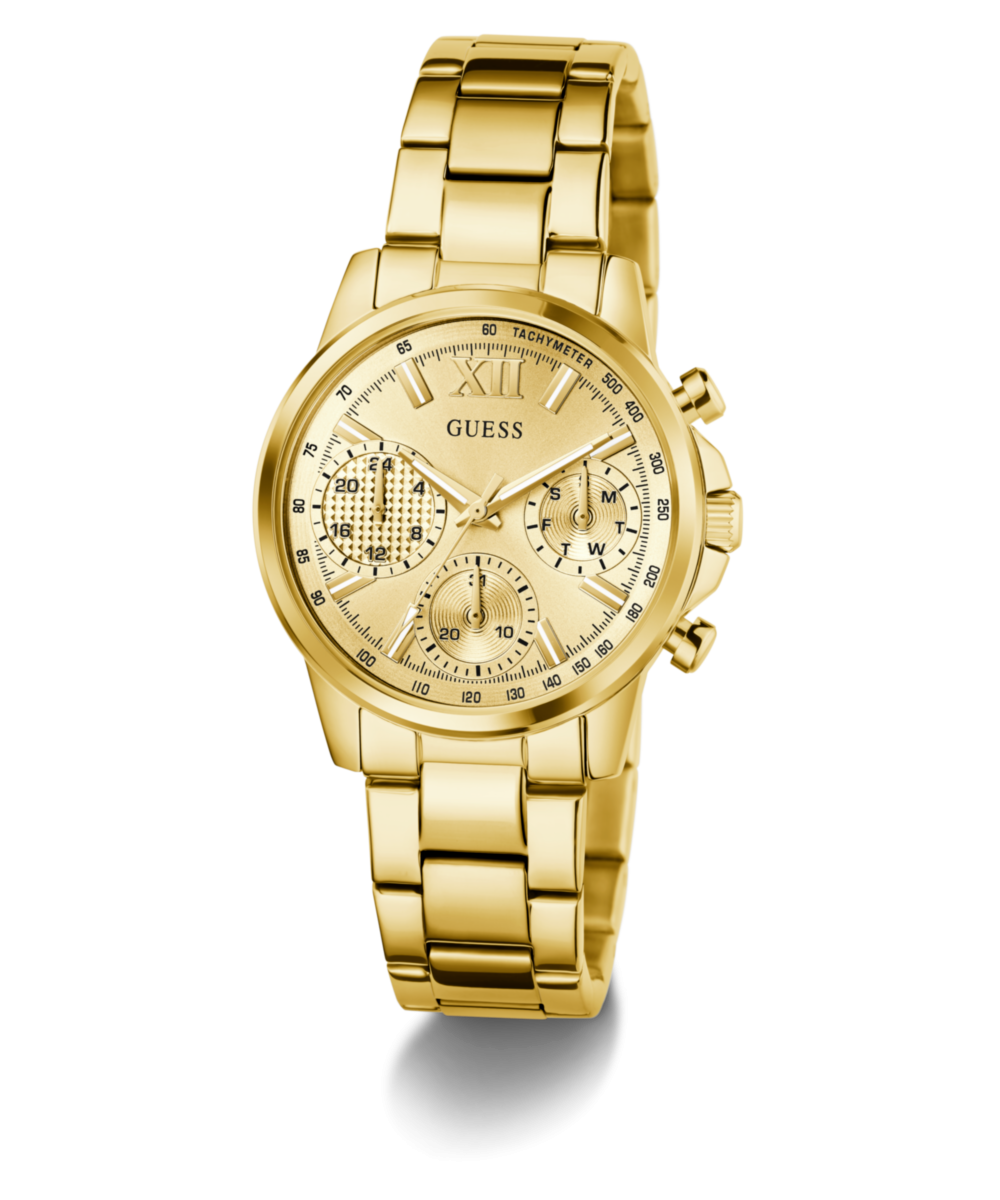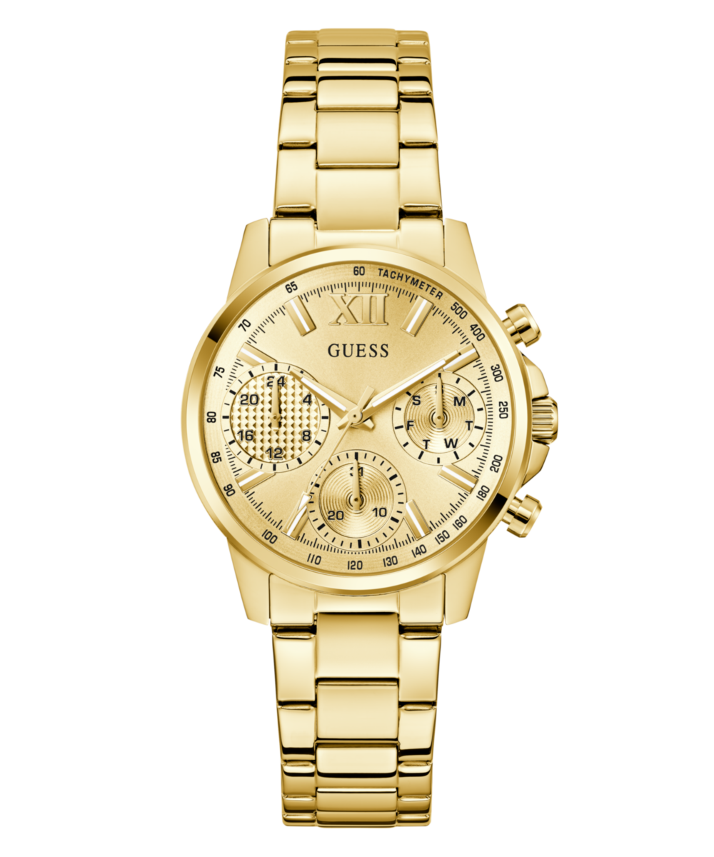 Zlatno kućište promjera 36 mm i polirana narukvica od nehrđajućeg čelika daju ovom modelu elegantan i profinjen izgled. Champagneni sunray brojčanik unosi toplu nijansu i suptilan sjaj dok višefunkcionalni dizajn osigurava praktičnost u svakodnevnom nošenju i stilsku notu za posebne prilike.