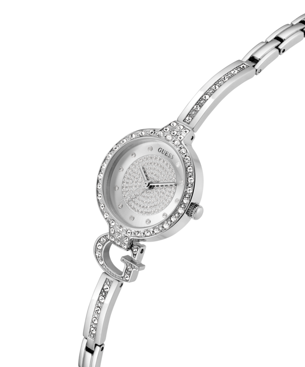 Prepoznatljiv dizajn dobiva svježu interpretaciju kroz ovaj elegantan i kompaktan model. Srebrno kućište promjera 28 mm upareno je s kristalnim prstenom, dok narukvica s istaknutim „G“ detaljem i sjajnim srebrnim brojčanikom stvara skladan i moderan izgled. Prilagodljivi članci omogućuju jednostavno podešavanje veličine, a sat se može nositi samostalno ili u kombinaciji s drugim nakitom. Ovaj model spaja modno naslijeđe s modernim završnim detaljima, čineći ga bezvremenskim dodatkom za svakodnevni stil.