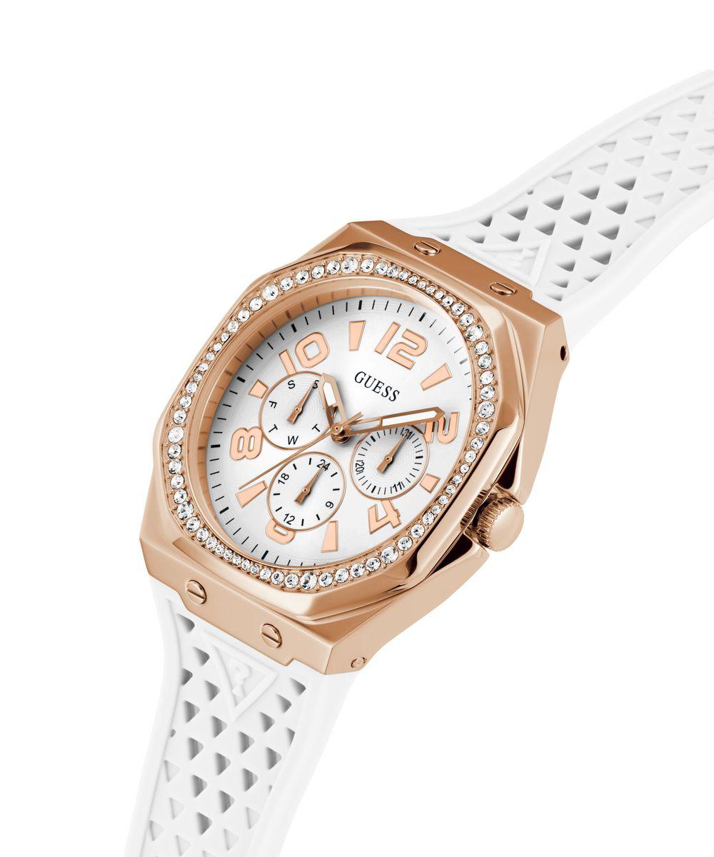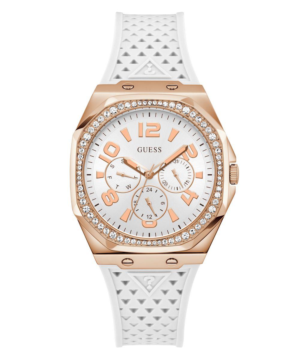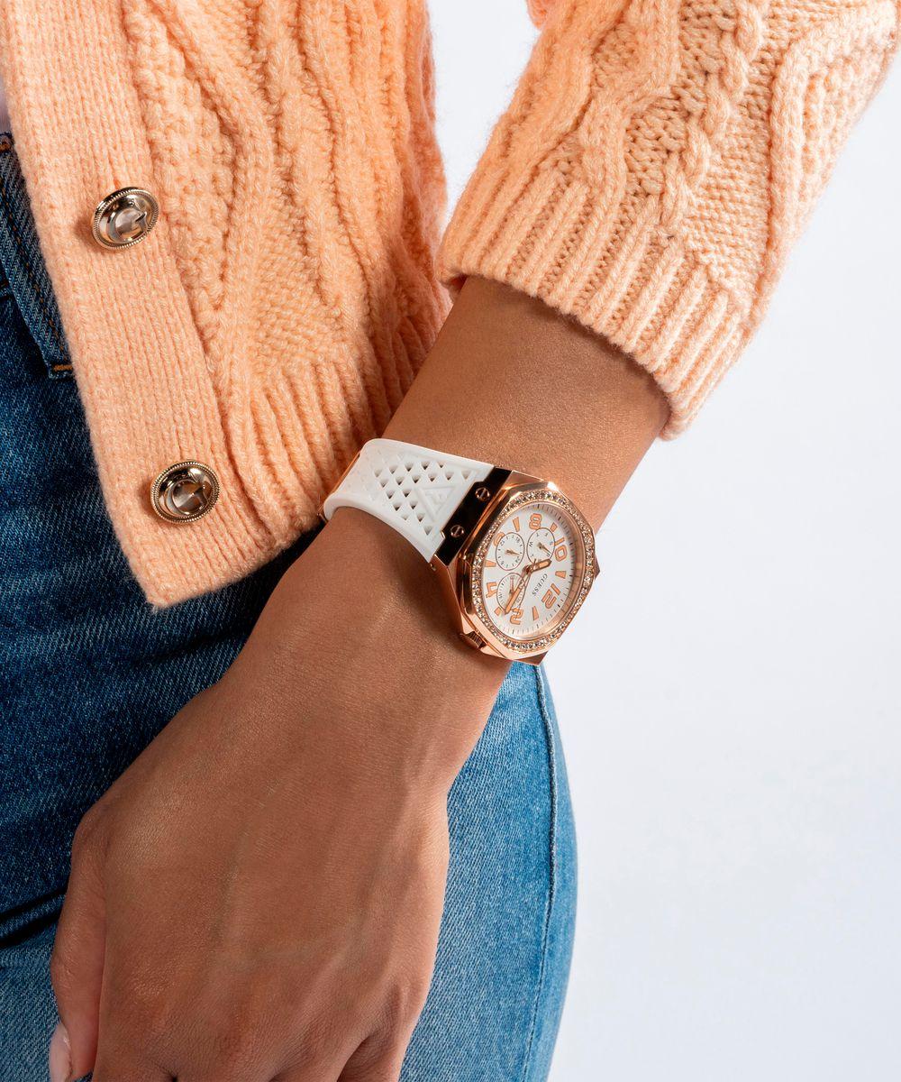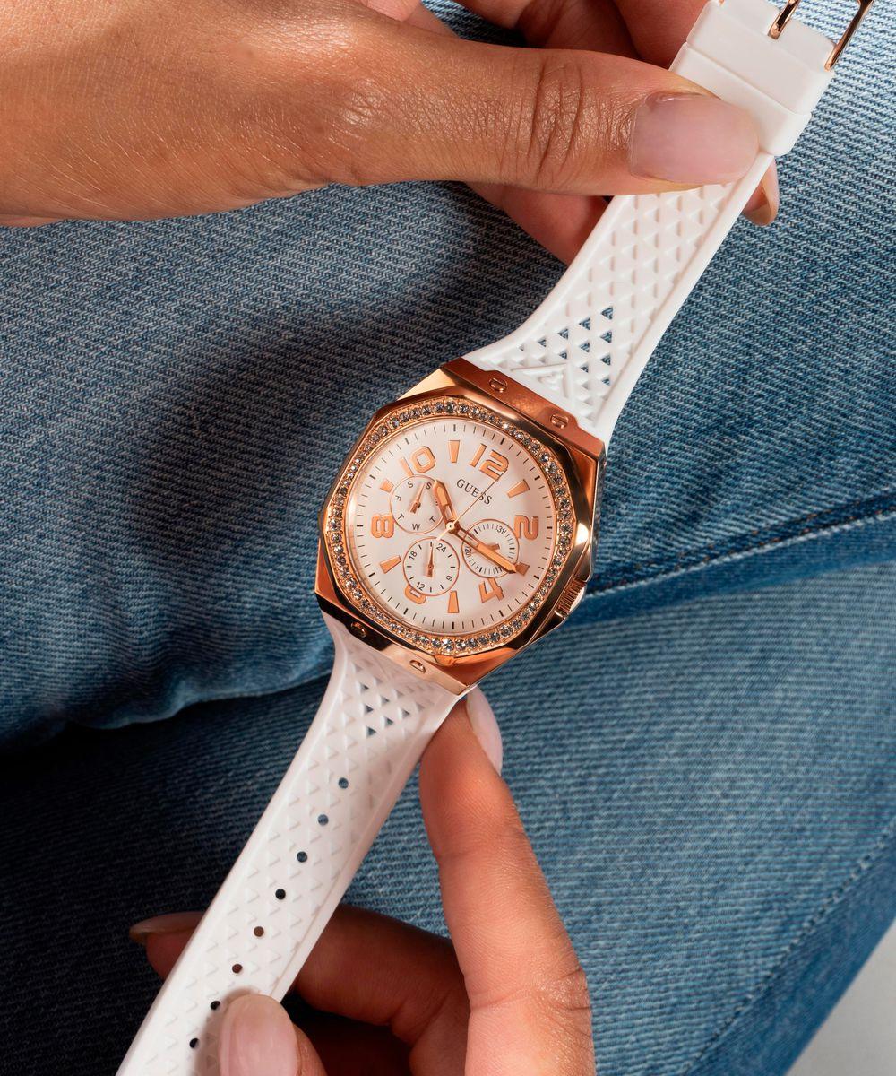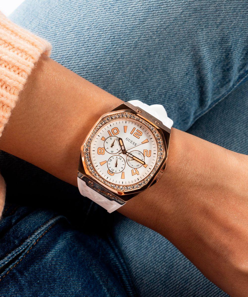Guess Zest sat u kombinaciji roze zlatne i bijele odiše ženstvenom sofisticiranošću, te daje svjež detalj svakom izgledu. Kristalni ukras na bezelu nježno svjetluca, te čini sat idealnim izborom za večernje izlaske, a istovremeno dovoljno svestran za dnevne kombinacije. Moderan dizajn privlači poglede, te podiže stil bez pretjeranosti. Savršen je poklon za posebne prilike, a također i kao dodatak garderobi kada želite unijeti dozu glamura i samopouzdanja.