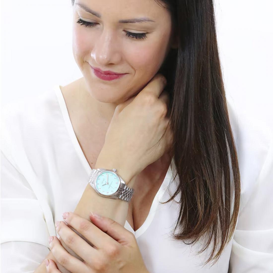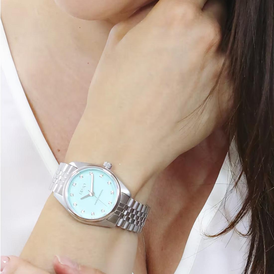 Liu Jo sat TLJ1989 osvježava svaku kombinaciju svojom nježnom tirkiznom plavom bojom brojčanika. Sjajna narukvica daje mu sofisticiran, a ipak odmjeren izgled koji lako prelazi iz dnevnog u večernji stil. Idealan je za dame koje vole modno osvježenje bez pretjerivanja, a istovremeno traže komad koji će privlačiti poglede. Savršen je izbor za poklon koji ostavlja utisak promišljenosti i senzibiliteta.