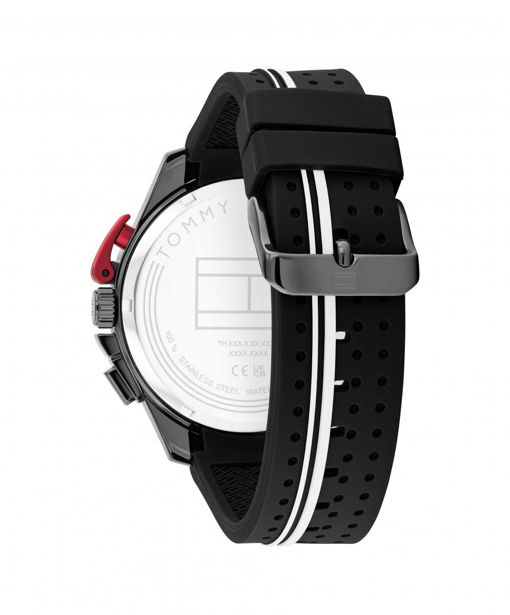 Tommy Hilfiger iz kolekcije Bank je odvažan muški sat koji spaja sportski karakter i prepoznatljivu eleganciju brenda. Crni dizajn sa diskretnim prugama i crvenim akcentom privlači poglede, a perforirani remen pruža udobnost tokom cijelog dana. Moderan brojčanik daje osjećaj sigurnosti i stila u svakom trenutku. Idealna je za urbane prilike, a predstavlja i pažljiv poklon za posebne trenutke.