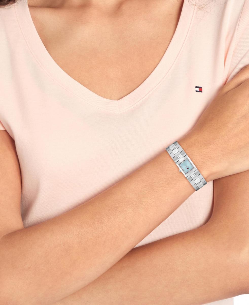 Tommy Hilfiger Ivy je suptilan, a istovremeno upečatljiv sat koji donosi prefinjen dodir svakom izdanju. Pravokutno kućište i integrisana narukvica stvaraju čist i moderan izgled, a svijetloplavi brojčanik daje nježan, a privlačan akcenat. Od poslovnih sastanaka do večernjih izlazaka ovaj sat podiže svaki styling bez pretjerane pompe. Idealan je kao pažljivo odabran poklon za posebne prilike, a nosioca prati stilom i pouzdanošću.