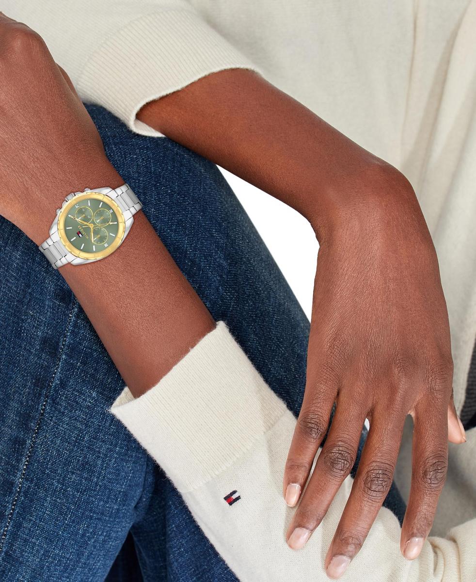 Tommy Hilfiger Mellie odiše suptilnom luksuzom i privlači poglede maslinasto zelenim brojčanikom, a zlatni detalji dodaju notu sofisticiranosti. Dizajn je dovoljno elegantan za poslovne prilike, a istovremeno dovoljno moderan za ležerne izlaze. Diskretni detalji na brojčaniku pružaju praktičnost bez narušavanja profinjenog dojma. Ovo je izvrstan izbor za one koji traže modni sat koji ostavlja utisak i koji se lako uklapa u različite stilove.