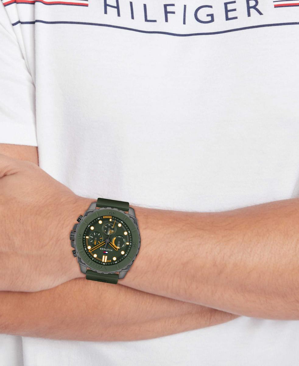 Tommy Hilfiger Morgan u zelenoj boji donosi odvažan sportski izgled koji privlači poglede. Robustan, a istovremeno profinjen dizajn njeguje urbani stil i podiže svakodnevne kombinacije. Udobna traka pruža komfor tokom cijelog dana, a jasno čitljiv brojčanik dodaje praktičnost bez kompromisa. Savršen je izbor za poklon, a za one koji žele modni detalj koji ostavlja dojam.