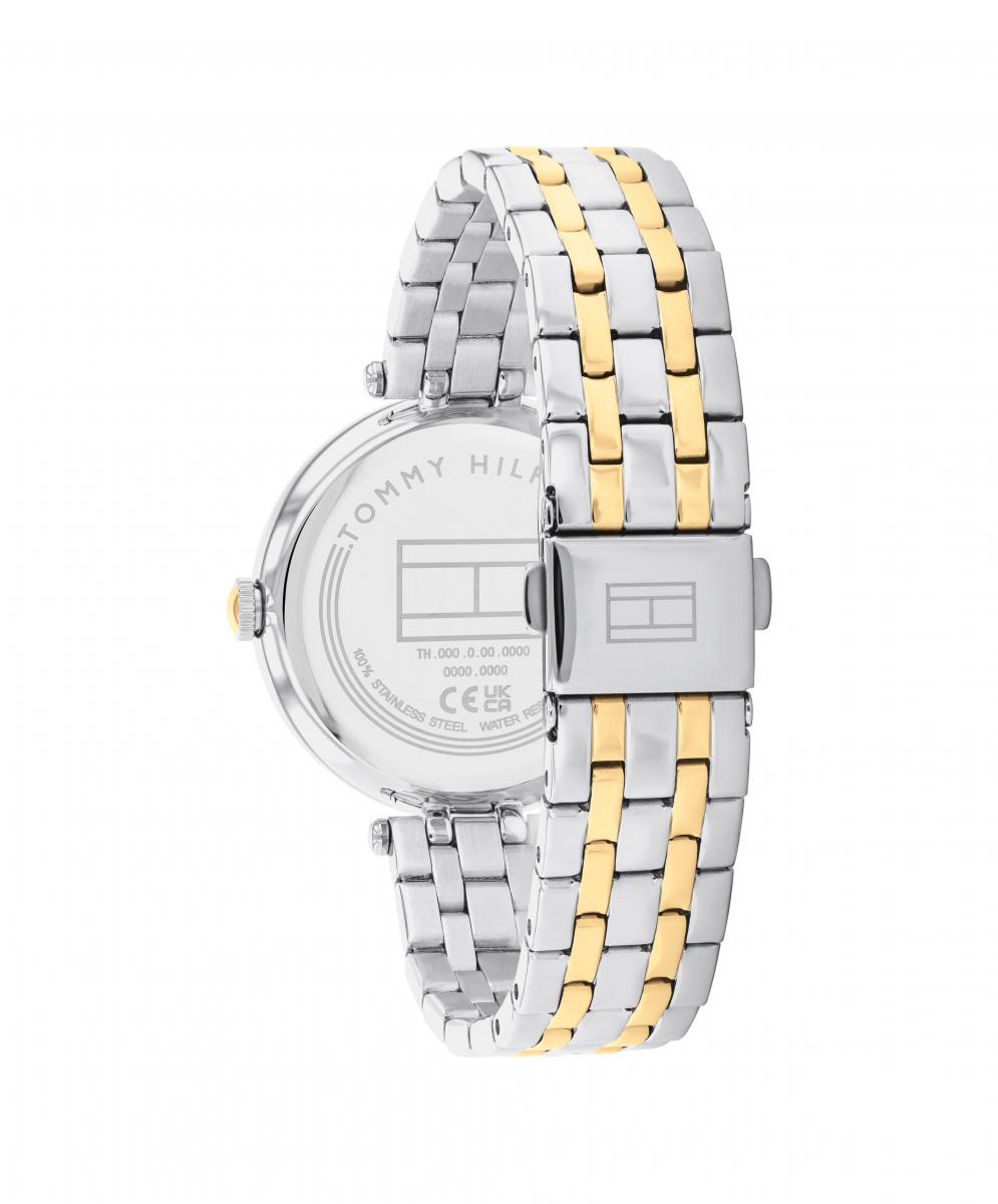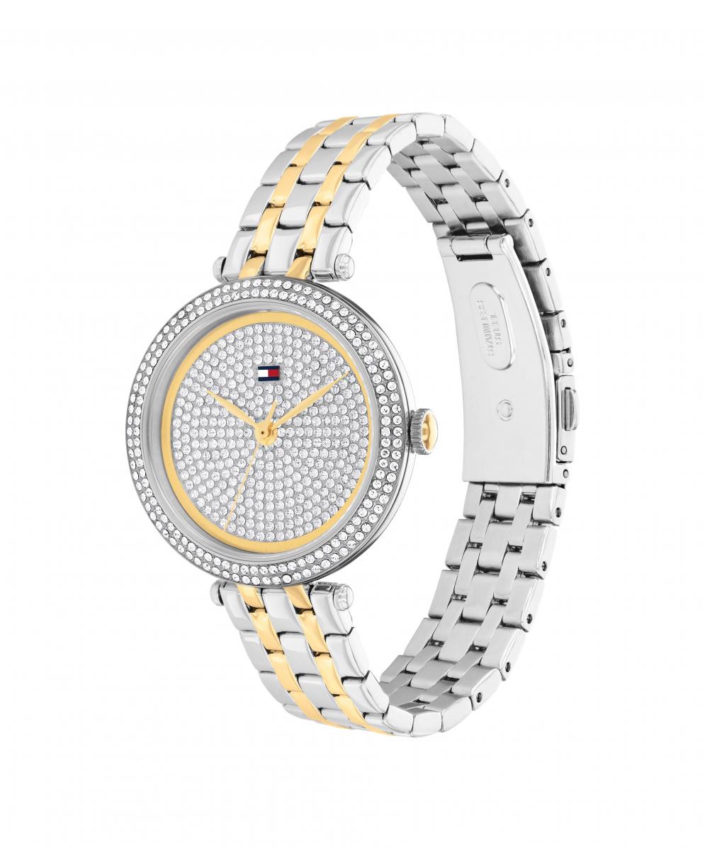 Tommy Hilfiger Natalie je ženstven i blistav ručni sat koji privlači poglede svojim kristalnim sjajem i dvo-tonskom elegancijom. Sjajna površina brojčanika i kombinacija srebrne i zlatne daju mu luksuzan, a pritom suvremen izgled koji lako podiže svaku odjevnu kombinaciju. On nosi dozu glamura koja ga čini idealnim izborom za večernje izlaske, a jednako lijepo izgleda uz poslovni ili ležerni stil. Savršen je kao poklon jer spaja prepoznatljiv modni potpis brenda, eleganciju i nosivost u svakodnevnim prilikama.