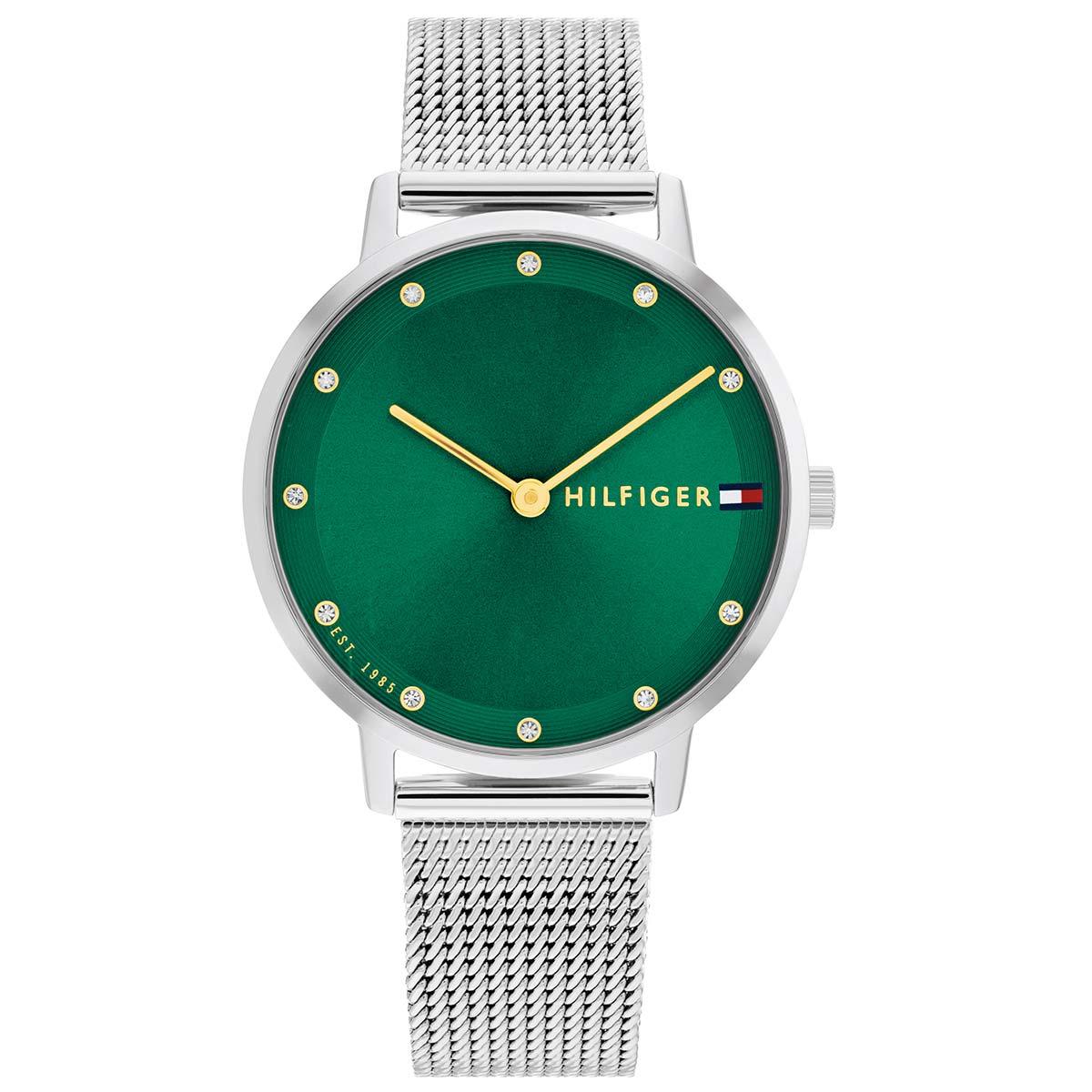 Tommy Hilfiger sat iz kolekcije Pippa ističe se upečatljivim zelenim brojčanikom koji privlači poglede i podiže svaki stajling. Pogodan je za poslovne prilike, a jednako dobro pristaje uz ležerne kombinacije. Fini remen daje osjećaj sofisticiranosti na zglobu, a minimalistički dizajn čini sat svestranim modnim dodatkom. Savršen je izbor kao poklon koji ostavlja dojam promišljene elegancije.