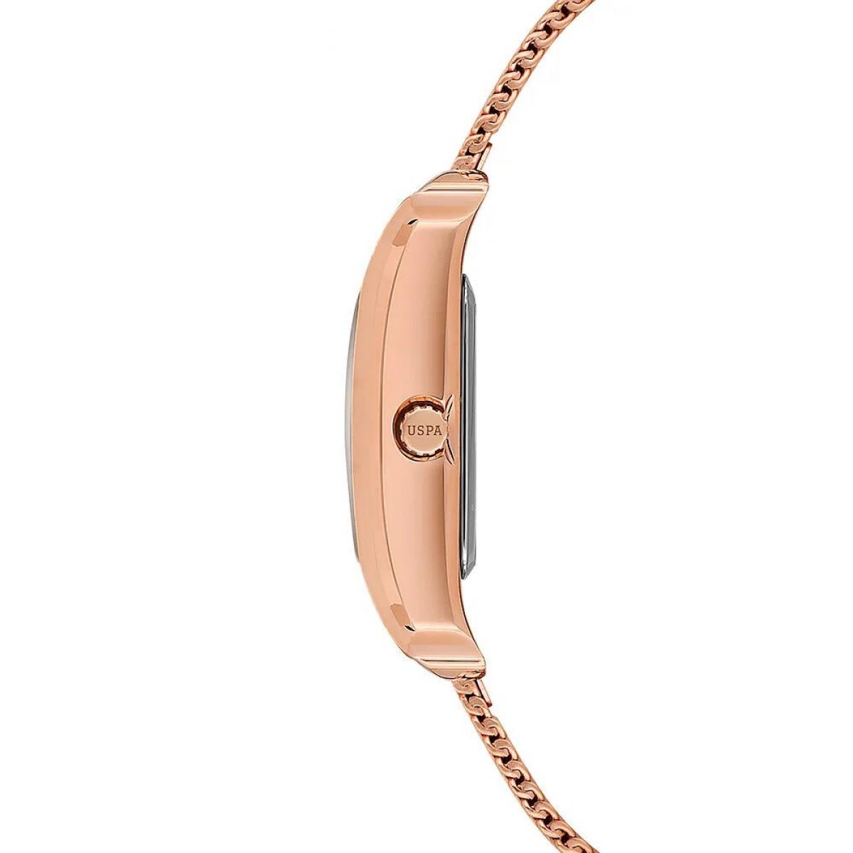 Ovaj ženstveni sat U.S. Polo Assn. u roze zlatnoj boji osvaja sofisticiranošću i detaljima koji privlače poglede. Pravokutni brojčanik i fino rađena mrežasta narukvica daju mu profinjen izgled koji se savršeno uklapa uz poslovni stil, a podjednako lijepo izgleda i uz večernju haljinu. Diskretni kristali oko brojčanika dodaju suptilan sjaj bez pretjeranosti, te sat postaje odličan izbor za poklon kada želite ostaviti upečatljiv dojam. Kupiti ovaj sat znači odabrati modni aksesoar koji istovremeno naglašava stil i daje osjećaj elegancije svaki dan.